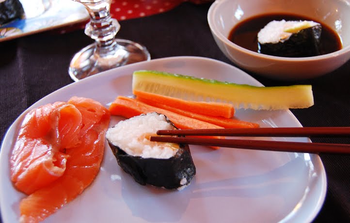 Ja! Det är så himla gott! Lagar det bara när en kompis som bott i Japan hälsar på. Borde egentligen göra det själv någon gång. Fast det är lite sällskapligt att stå och småprata och rulla...